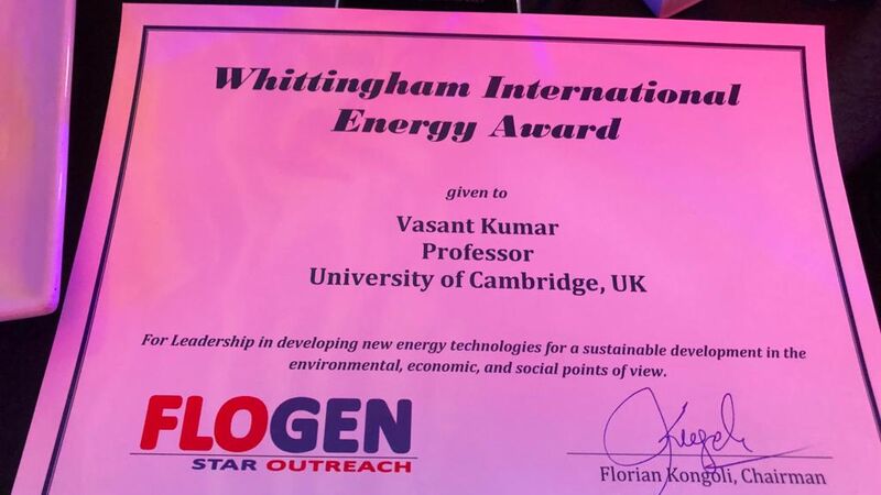 MCG is delighted to share the news that Professor Vasant Kumar was recently honored with Whittingham International Energy Award "For Leadership in developing new energy technologies for a sustainable development in the environmental, economic, and social points of view".